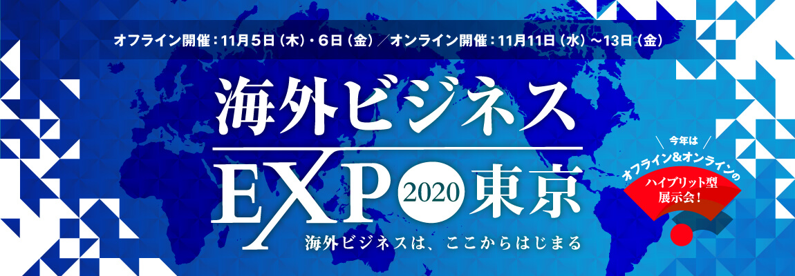 2020年11月5日(木)〜6日(金)の2日間、東京国際フォーラムにて、『海外ビジネスEXPO2020東京』を開催いたしました。 『海外ビジネスEXPO』とは、海外ビジネスに関する...