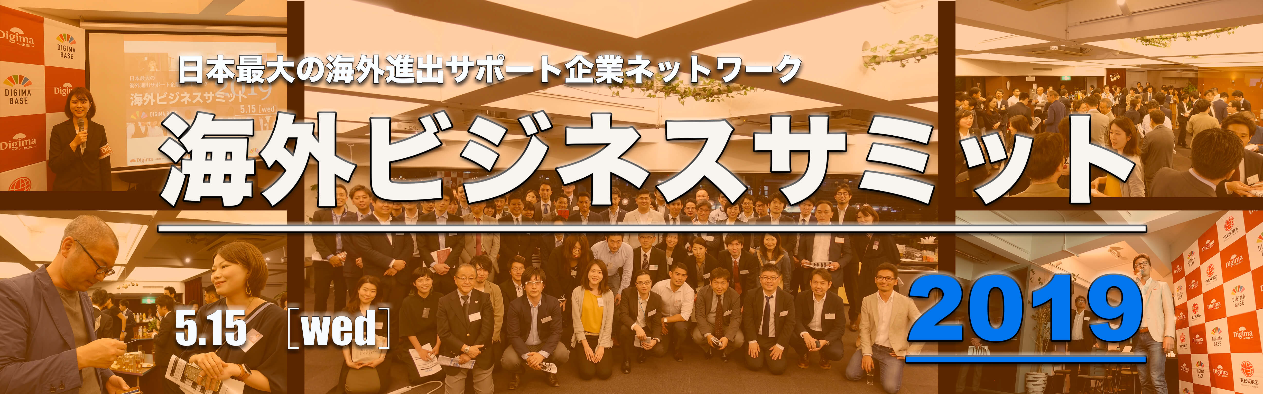 2019年5月15日(水)、東京は市ヶ谷の「DIGIMA BASE」にて『海外ビジネスサミット 2019』を開催いたしました。 日本最大級の海外進出企業サポートネットワークと銘打っ...
