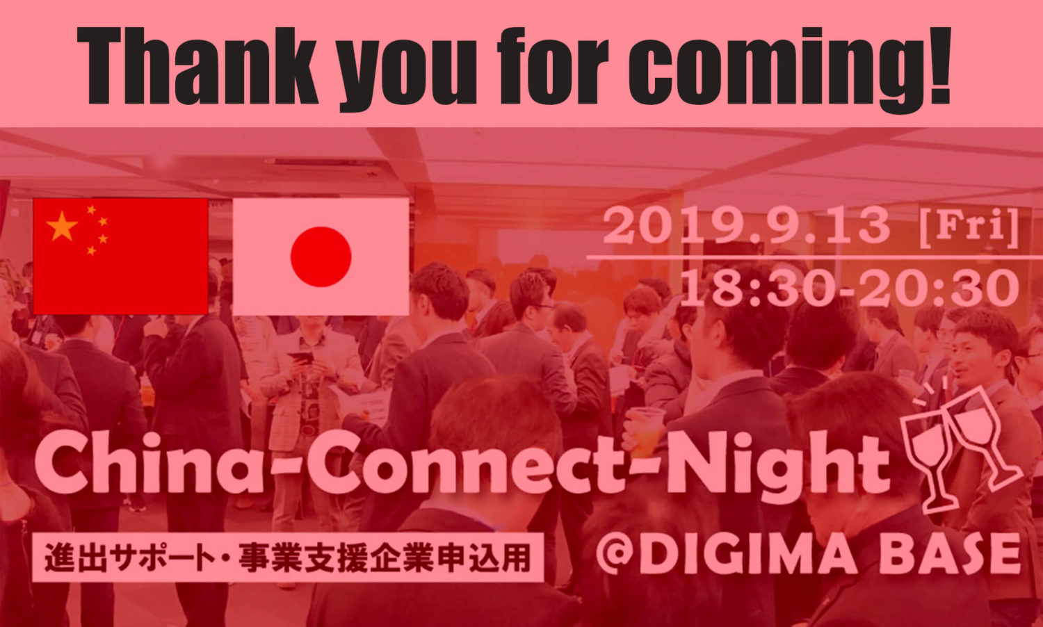 2019年9月13日(金)、「Digima〜出島〜」の運営する海外ビジネスコミュニティ「DIGIMA BASE」にて『China-Connect-Night<中華圏進出を検討してい...