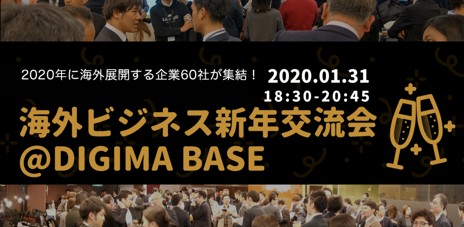 2020年1月31日(金)、「Digima〜出島〜」の運営する海外ビジネスコミュニティ「DIGIMA BASE」にて、2020年に海外展開する企業限定の 『海外ビジネス新年交流会』...