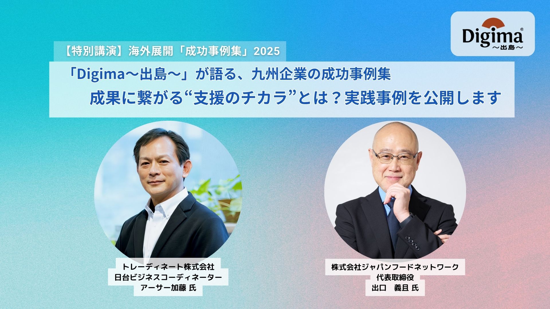 本セミナーでは、が実際に「Digima〜出島〜」を活用して海外進出支援を行った「福岡に本拠地を持つ支援企業」が登壇。