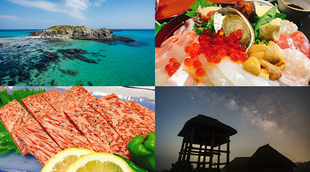 壱岐島(いきのしま)は、博多港から高速船で約1時間の位置にあり、海をはじめとする美しい自然が豊富で、千を超す神社や古墳などの歴史的遺産・パワースポットが多数存在しています。また、麦焼酎の発祥地でもあり、生ウニや壱岐牛、四季折々の野菜など海の幸も山の幸も楽しめる食材の宝庫としても知られています。