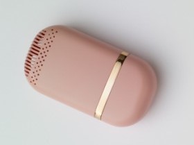 「ブルーア」と名づけられたこの新商品は、オゾンとイオンを発生する携帯型のクロスプラズマイオン発生機。従来のような部屋置き型ではなく、ネックレスのように首から下げて使う新しいスタイル。中城社長によれば、イオンとオゾンの働きによる除菌、消臭効果があり、ウイルスや雑菌などが鼻や口から入るのを防ぐという。